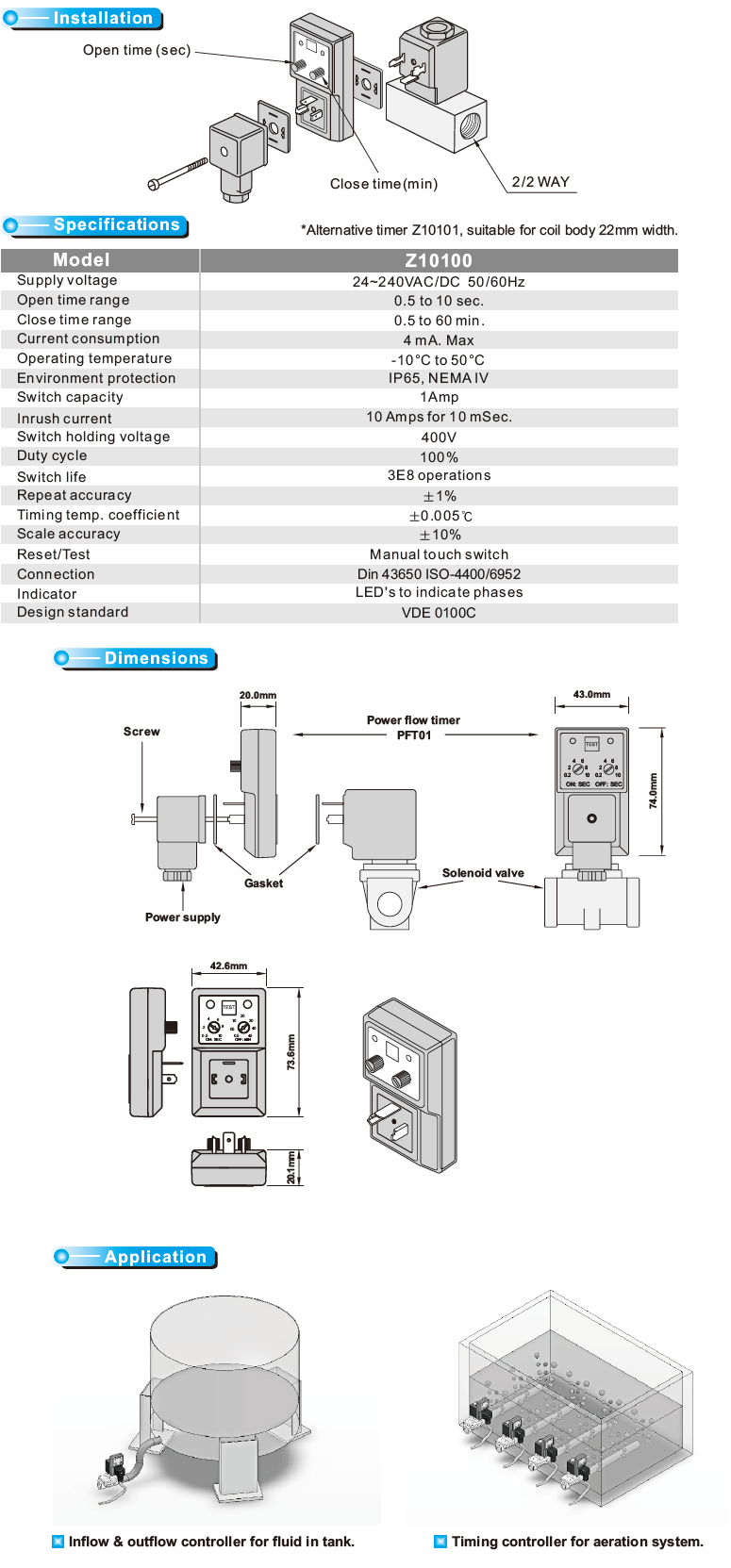 - Solenoid valve timer / controller DIN 43650A (Z10100) or DIN43650B (Z10101).